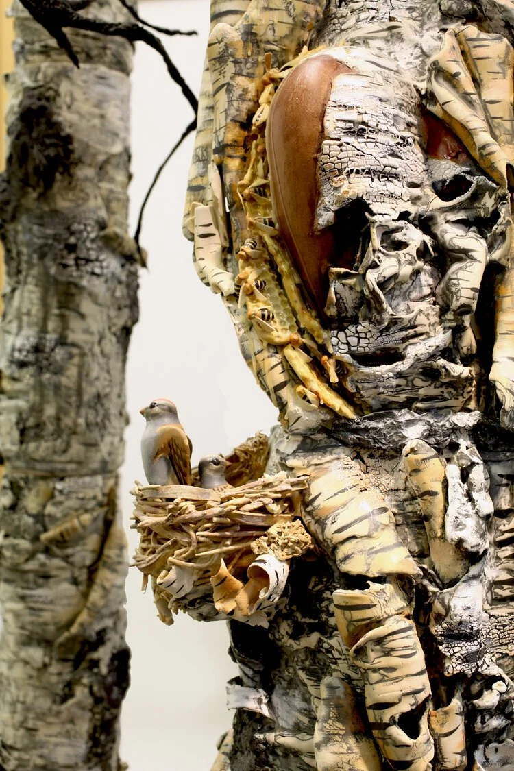 With the large-scale porcelain sculpture, The Return, I consider the forest as a site of enchantment and an incubator of mysterious energies. This explores the imagery of the birch forest as a locus for metamorphosis and transformation.